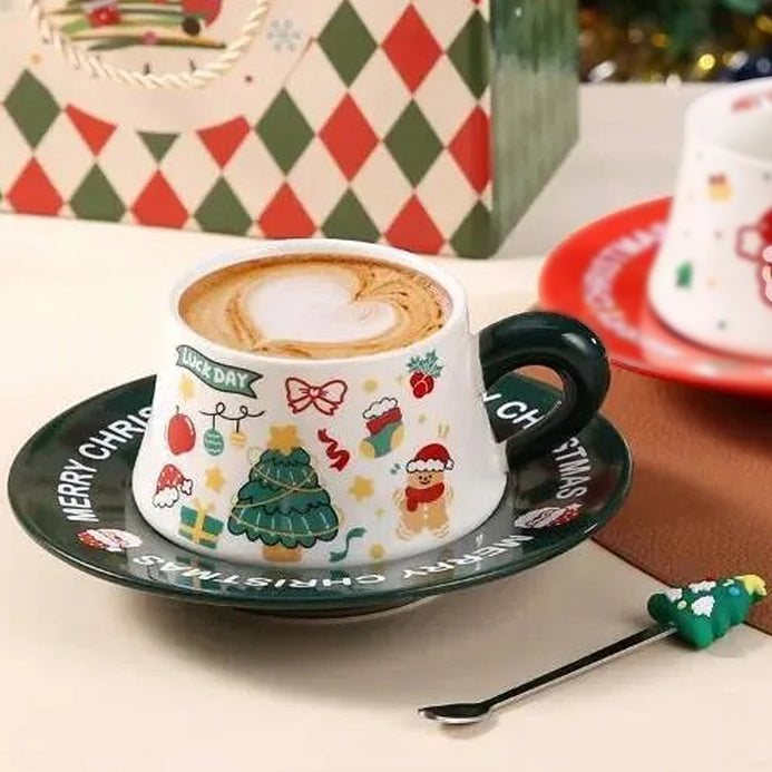 1. Classic Christmas Joy: A december with a hot coffee in a matching christmassy themed cup, some christmas music and good chatty time with your loved one. This scene just becomes perfect with our finely created and designed christmas themed mugs and saucer set.