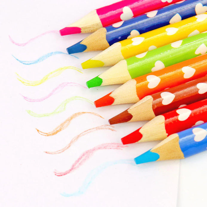 - Premium Quality - Chunky pencils are non-toxic and 100% safe for kids. These are break-resistant pencils that provide rich, smooth, and good coverage. It can be easily sharpened to a fine point to allow exquisite detail. The cute multi-color heart design on the outer body is eye-catching, and the varnish coating prevents pencils from getting dirty.