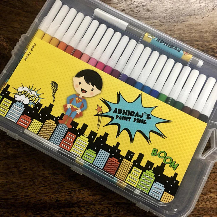 Let that creativity burst forth with our box of 24 vibrant aqua sketch pens. Available in a gorgeous, large, personalised transparent box. Each sketch pen is personalised so they’re less likely to get lost in the classroom! Pick one for yourself or as a perfect gift for any art-loving child or grown-up!