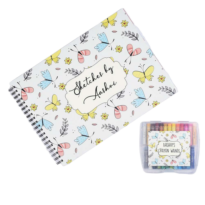 Personalised Sketch Book with Name Crayons | Butterfly