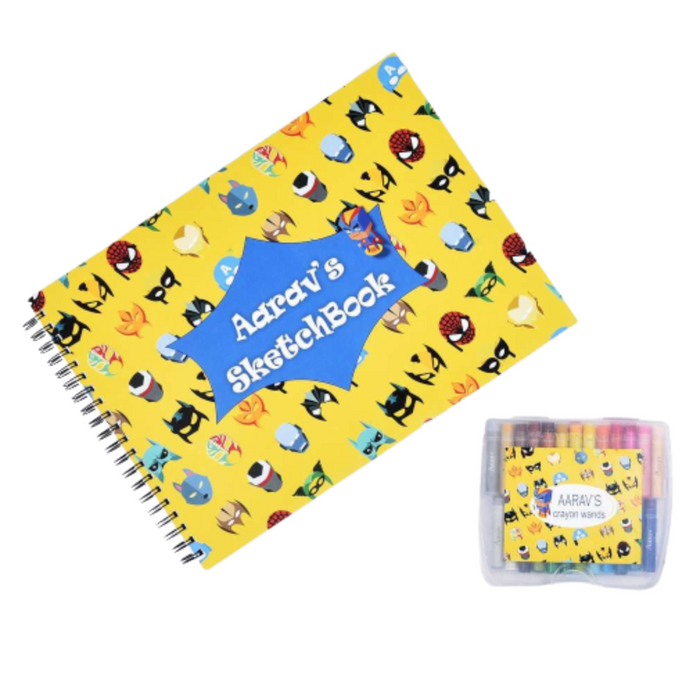 Personalised Sketch Book with Name Crayons | Mask Super Heroes