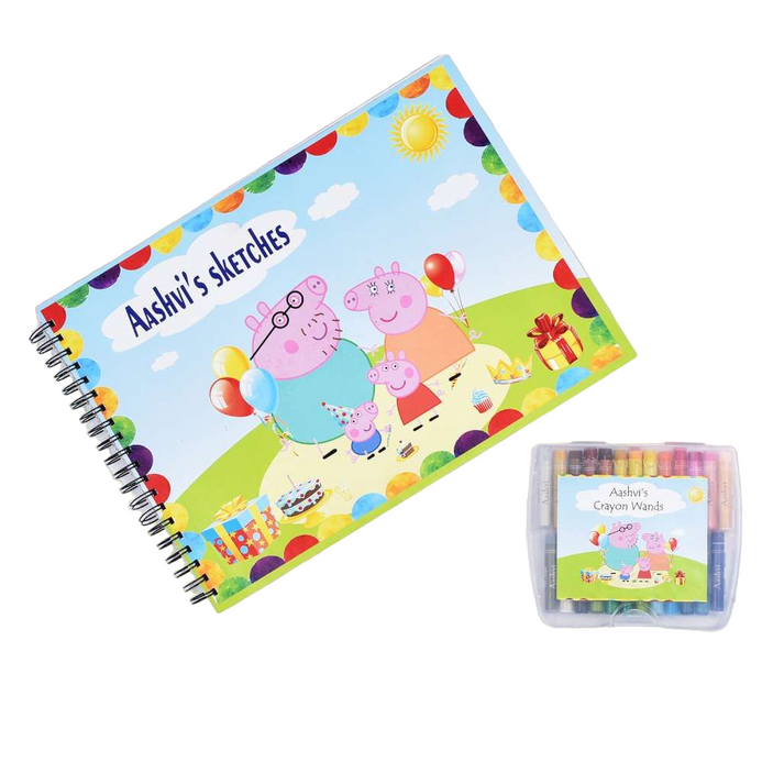 Personalised Sketch Book with Name Crayons | Peppa Piggy