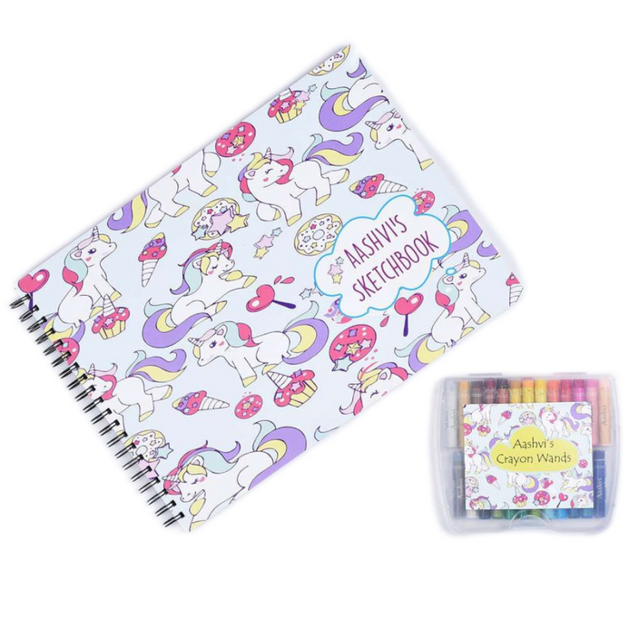 Personalised Sketch Book with Name Crayons | Shy Unicorn