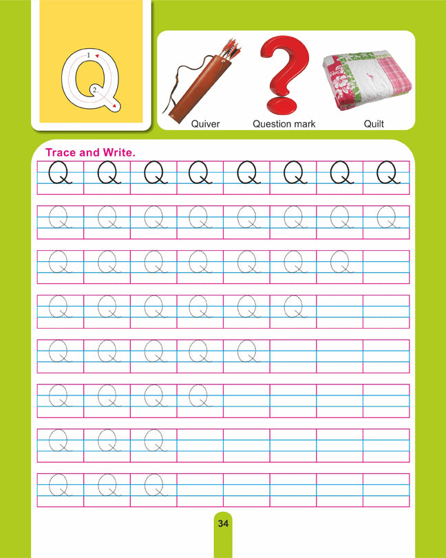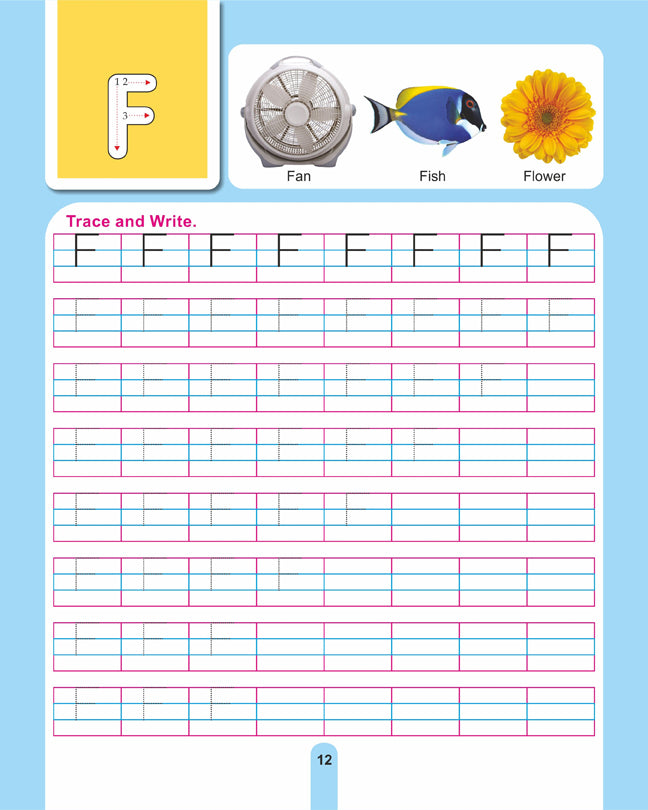‘Pattern Writing’ is a must-have for beginner writers to help them strengthen their penmanship. Filled with easy-to-understand words, this book includes trace and then copy each capital letter of the alphabet until children master themselves in writing skills. • Perfect for ages 2-6 • 48 pages • Interesting words • Easy-to-read format • Colourful presentation • Nice cover design Support of vibrant and colourful images makes it easy for early learners to understand the meaning of each word. This book will gently guide children to confidently write and strengthen their handwriting skills.