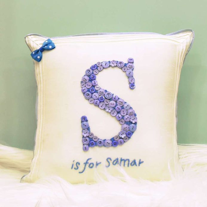 Monogrammed Button Cushion | Blue