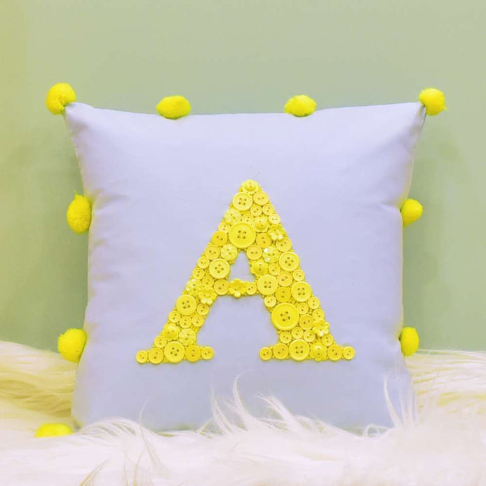 Monogrammed Button Cushion| Pom Pom