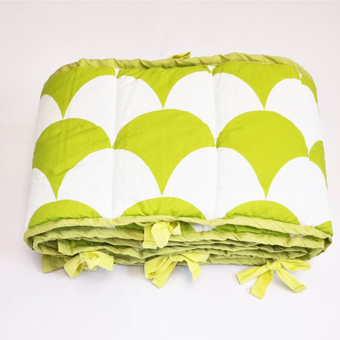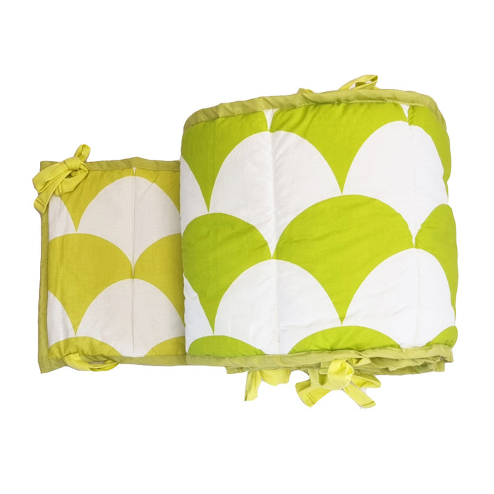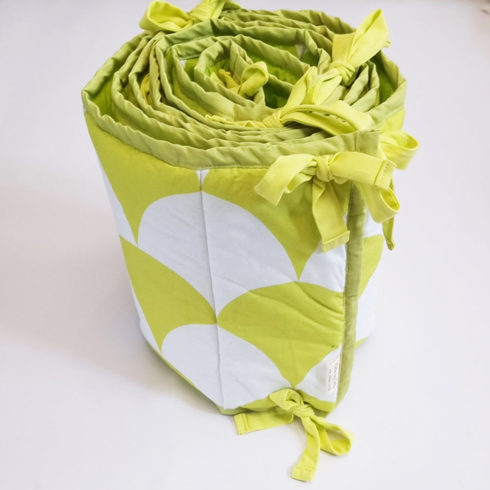 Make sure your child sleeps in a comfortable way and in style with our universal Cot Bumper. Not only is the Organic Cotton soft on the skin, but the design and colour is very neutral and also makes up a gorgeous accessory in your little one's bedroom. It creates a safe sleeping environment for the baby. It helps to protect your baby from getting hurt from the walls of the cot and also prevents their hands and legs from getting stuck inbetween the rods of the cot. Made from 100% Organic Cotton, it's attractive, cute, unique and adds more style to the look of your little one's nursery. It fits a standard size cot of 27.5" by 55". It can be used in a smaller size cot as well by overlapping the extra bit ! The Cot Bumper can be straight put into the washing machine.