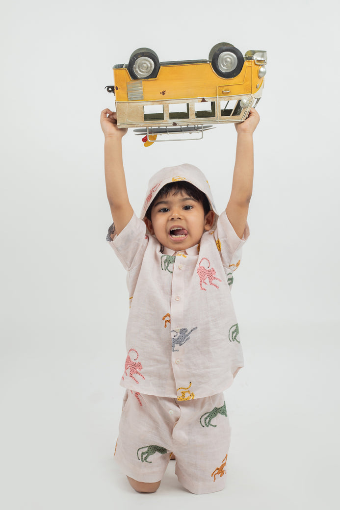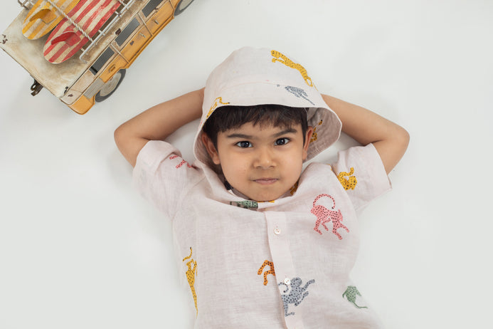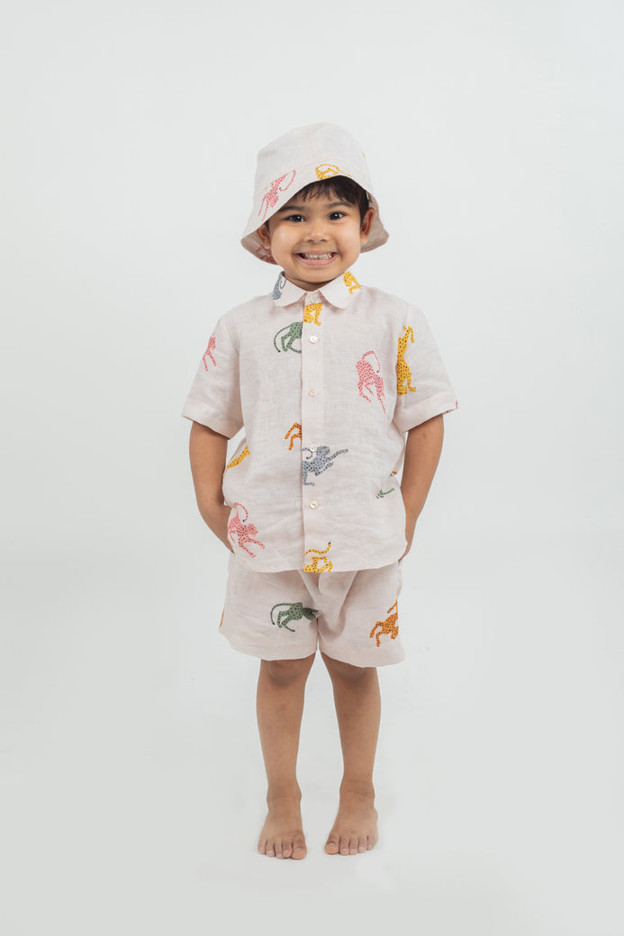 Linen Printed Co-Ord Set With Bucket Hat -3Pc