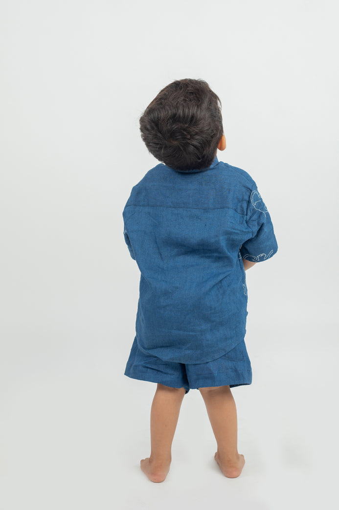 Linen Hand Embroidered Katha Co-Ord Set With Bucket Hat