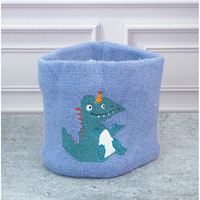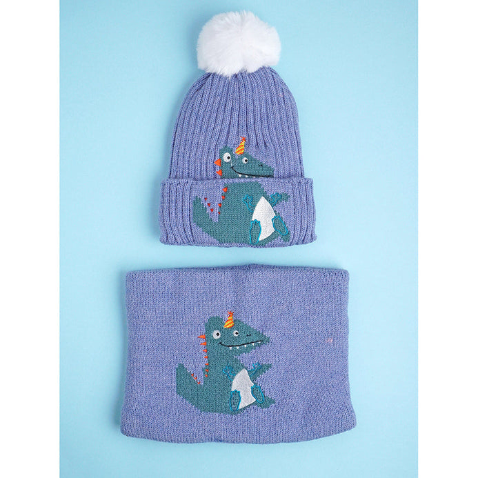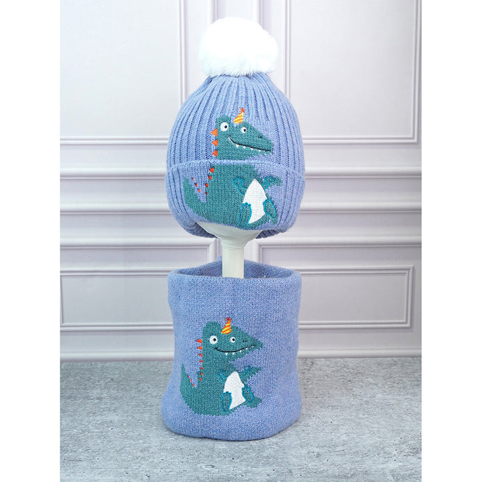 2Pcs Themed Blue Party Dino Themed Beanie Winter Cap With Matching Neck Cuff Style Muffler | 4-10 Years