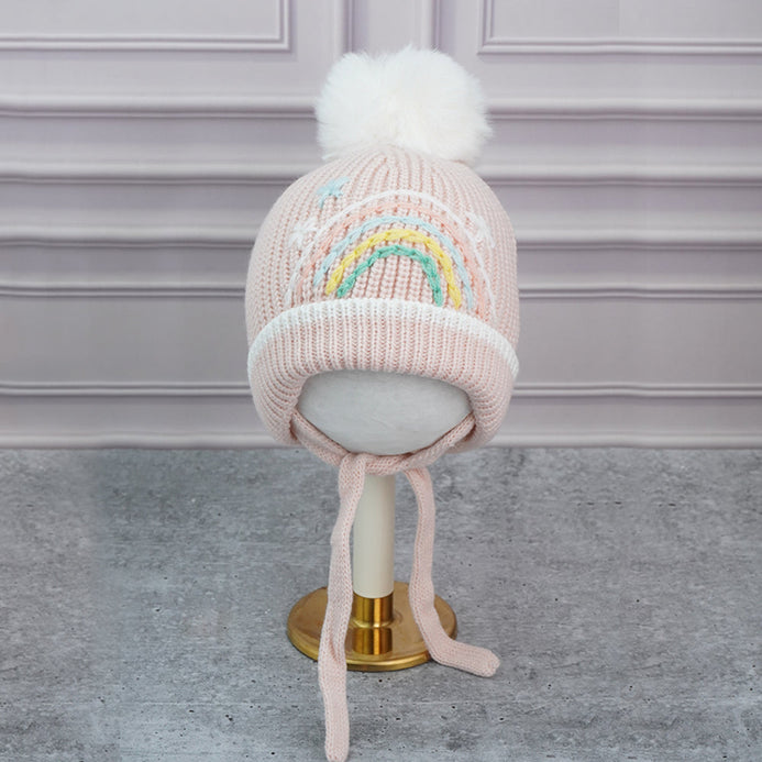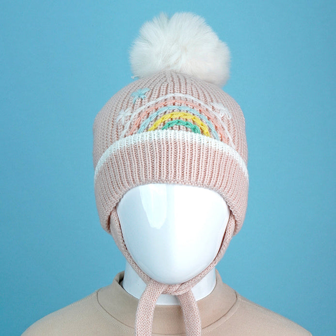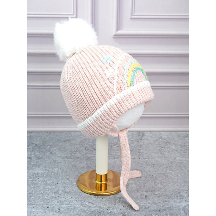 3. Cute Design: The attractive and soothing embroidered pastel rainbow makes the entire beanie cap so attractivea and cute. The big size pompom on the top adds to the cuteness quotient.