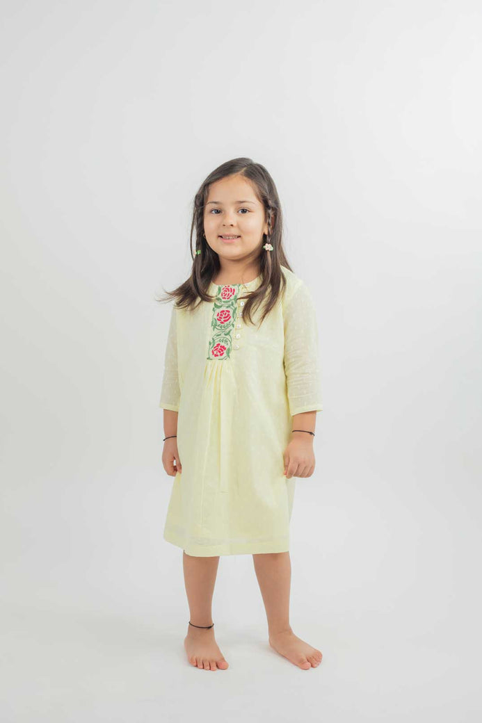 Cotton Dobby Dress With Hand Embroidered Yoke