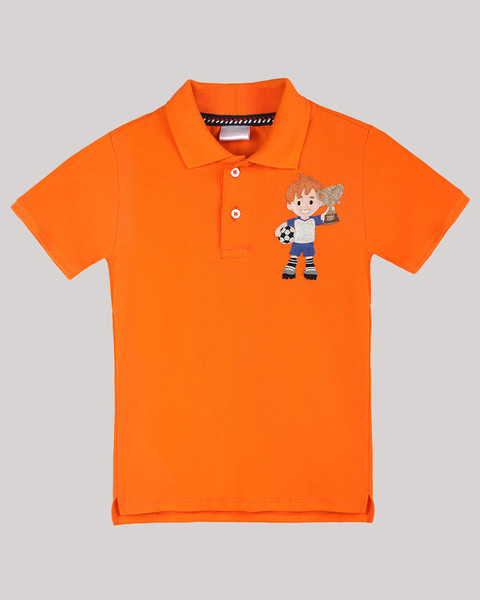 This Wear - With - Anything Polo T - Shirt Is A Great Combination Of Style And Comfort For Your Little One'S Chic Outings . It Has A Hand - Embroidered Football Player Motif Which Will Make Him The Trendsetter Amongst His Peers!