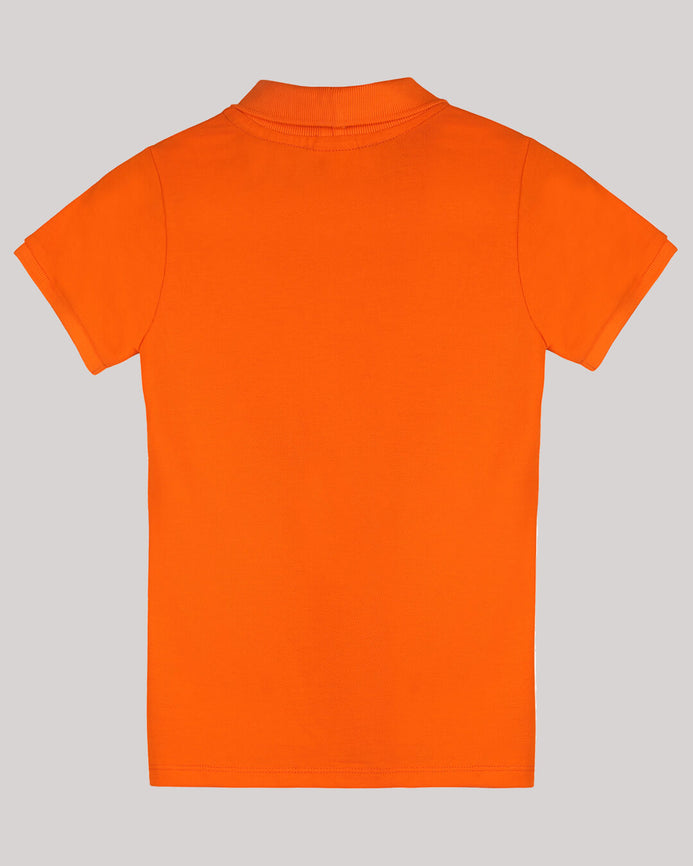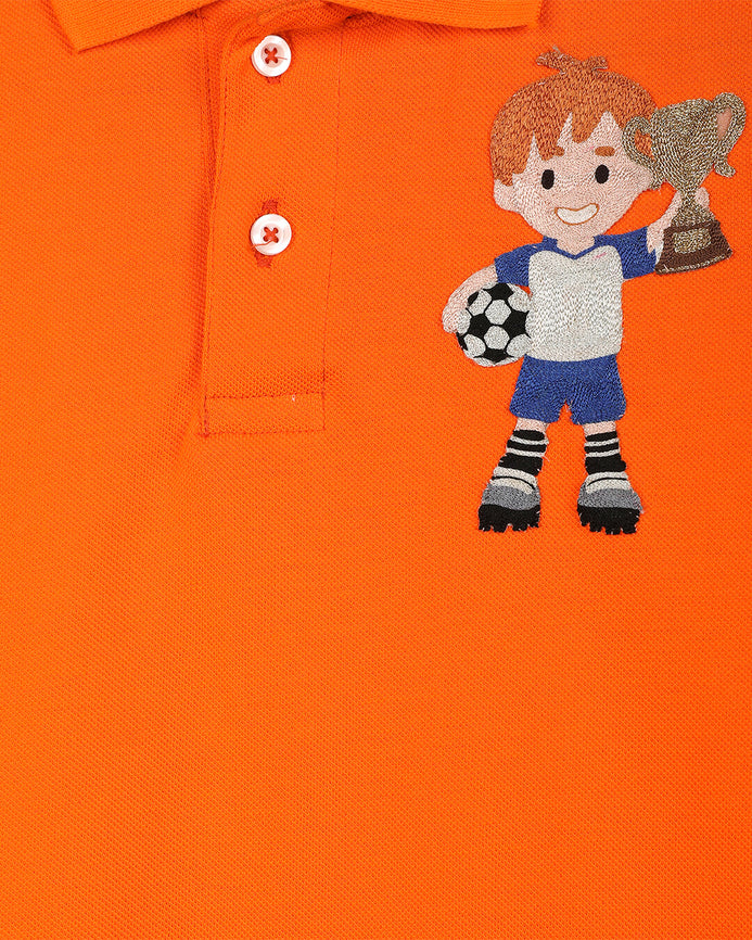 Orange Polo T-Shirt With Football Player And Trophy Motif