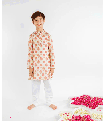 Beige Tree Motif Printed Kurta And Pyjama Set