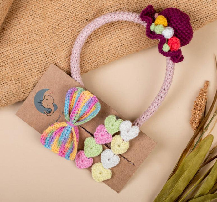 Introducing our delightful collection of crochet hair accessories for kids! Designed with playful charm and comfort in mind, each piece is handcrafted to add a touch of whimsy to your little one's hairstyle. From vibrant flower clips to adorable headbands, our crochet accessories are perfect for adding a pop of color and personality to any outfit. Made with soft, child-friendly materials, they are gentle on delicate hair and skin, ensuring your little trendsetter stays stylish and happy all day long. Explore our enchanting range and let your child's imagination soar with our fun and fabulous crochet hair accessories.