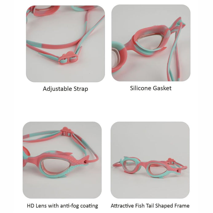 Pink & Mint Fishtail Designed Frame Anti Fog UV Protection Leakproof Design Swim Goggles | 3yrs - 8yrs