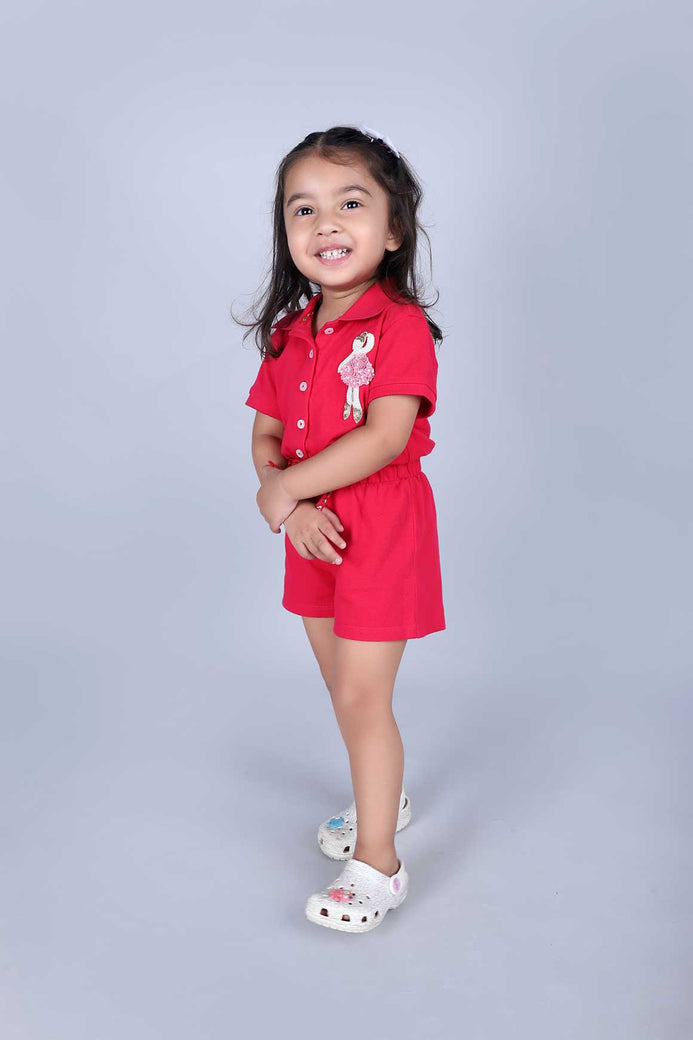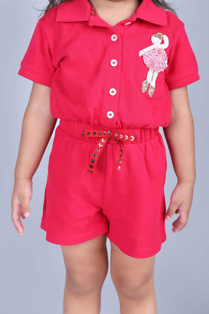 Girls Are Magical! This Cute And Trendy Hand- Embellised Playsuit Is Perfect For Your Little Fashionista'S Chic Outings. It Is Also High On Comfort And Style Quotient Which Makes It A Wardrobe Must-Have.