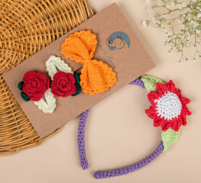 Introducing our delightful collection of crochet hair accessories for kids! Designed with playful charm and comfort in mind, each piece is handcrafted to add a touch of whimsy to your little one's hairstyle. From vibrant flower clips to adorable headbands, our crochet accessories are perfect for adding a pop of color and personality to any outfit. Made with soft, child-friendly materials, they are gentle on delicate hair and skin, ensuring your little trendsetter stays stylish and happy all day long. Explore our enchanting range and let your child's imagination soar with our fun and fabulous crochet hair accessories.