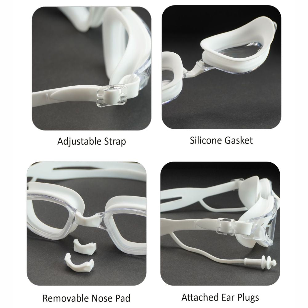 7. Attached Earplugs & Adjustable Strap: Attached ear plugs makes it convenient and easy to seal or open the ears. Featuring an easy-to-use adjustable strap, these goggles fit securely on different head sizes, ensuring comfort and stability.