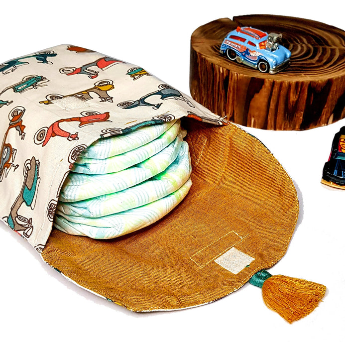 This cute tote bag is designed to store diapers and carry them more conveniently! The Velcro closure makes closing and opening the bag easier and the attached handle can be used to hang the bag on a stroller. The bag can also be used to carry cosmetics, toiletries, feminine hygiene and other daily items too!