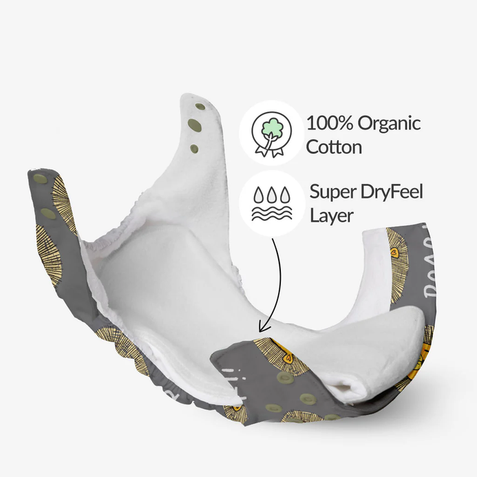 Dry Feel Magic Pad consists of 12 layers (after folding) of GOTS Certified 100% Organic Cotton with a Super DryFeel layer on top to keep baby’s bum dry. Booster Pad is made of 8 layers of Organic Cotton to be used in addition to the Dry Feel Pad for boosting the absorbency of the SuperBottoms Freesize UNO making it ideal for 12 Hour absorbency. Foldable design to make the pads dry very fast making it ideal for monsoon, winter seasons.