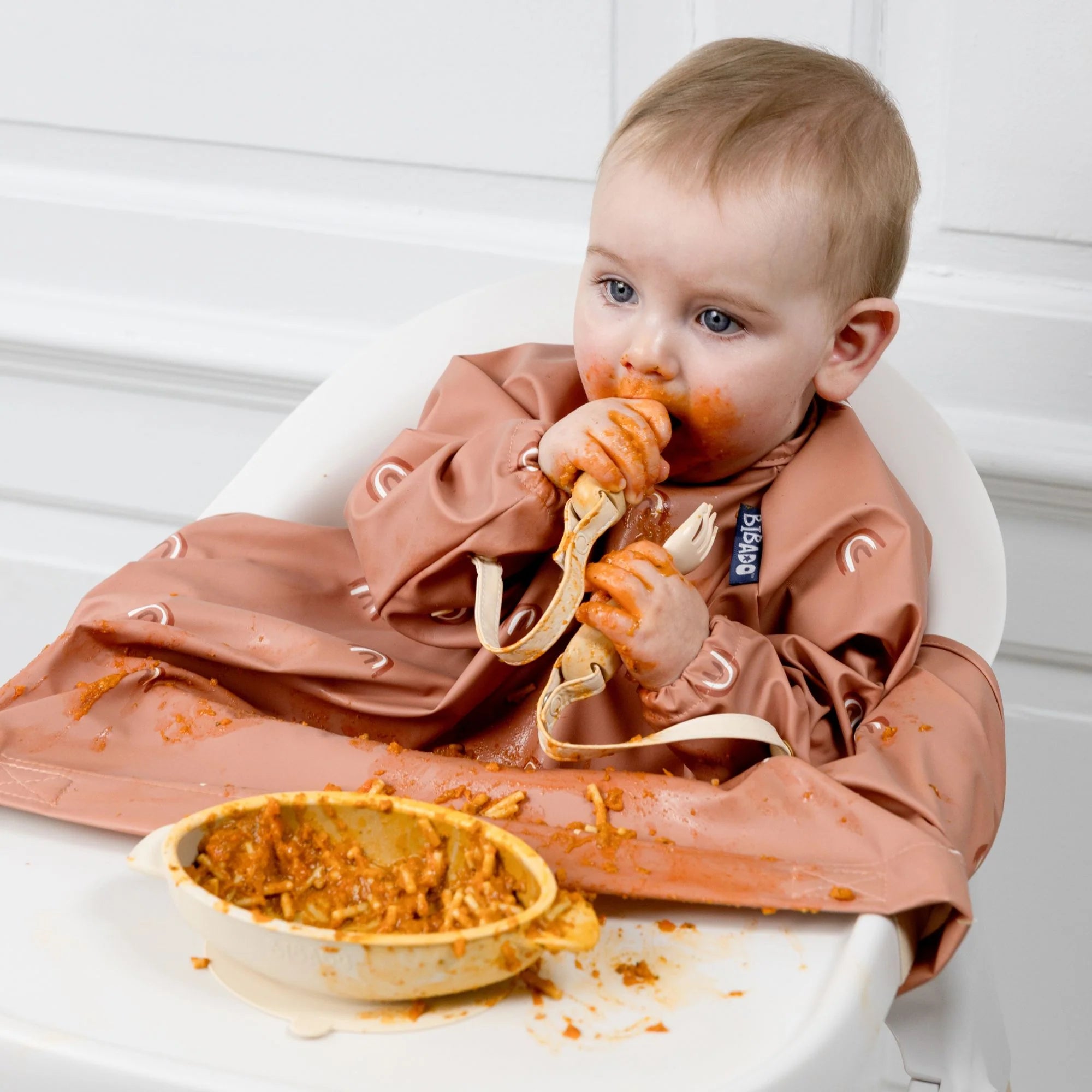 Supports Your Child’s Self-Feeding Skills- Our coverall feeding bibs are compatible with BIBADO Handi Cutlery. It comes with ‘no drop’ straps, so you won’t have to pick up spoons & forks from the floor while your little one learns how to use them. (Handi Cutlery are sold separately)