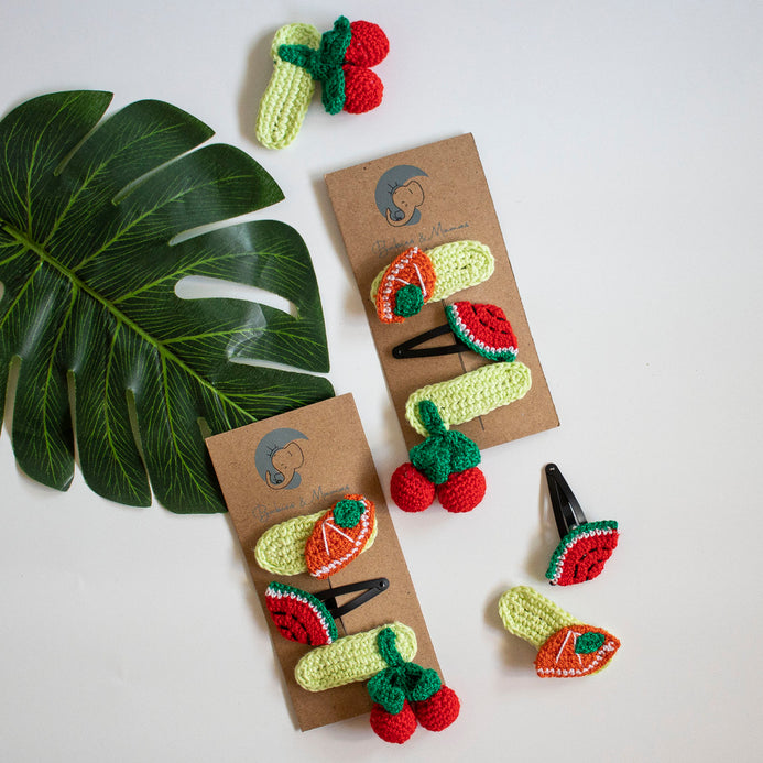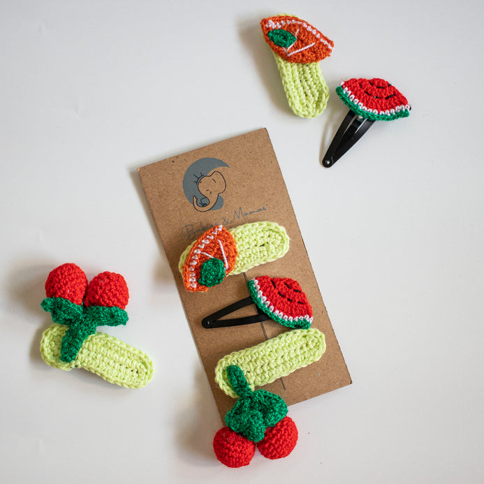 These handmade crochet clips are exclusively handcrafted for your little ones. It is a tic tac clip with hand stitched crochet motif on the base.