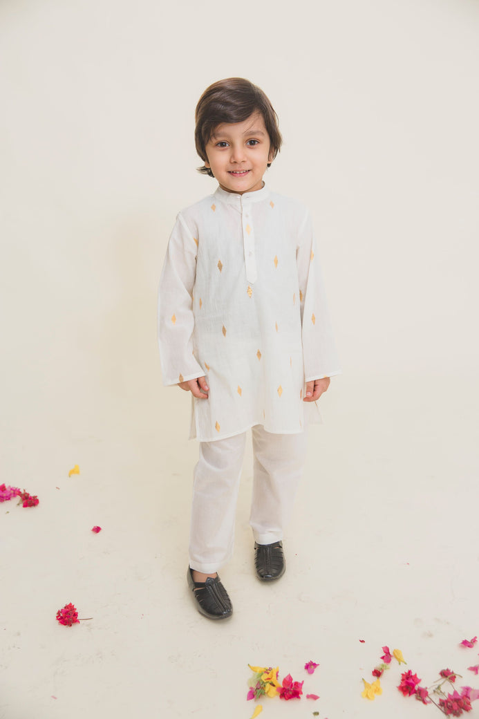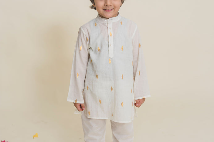 Cotton Woven Kurta With Golden Zari Weave.