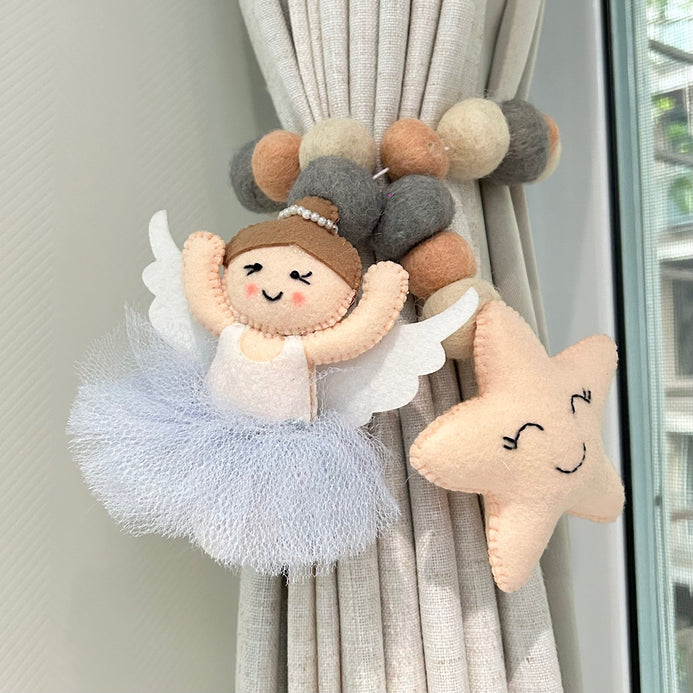 Transform your child's room with our enchanting Fairy themed Curtain Tie. In soothing shades of Purple, Gray, Peach and White, these delightful accessories not only keep curtains neatly in place but also add a charming touch to the decor. Handstitched and beautifully crafted, they're the perfect blend of functionality and fun for your little one's space!