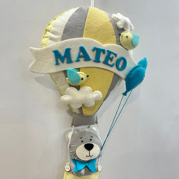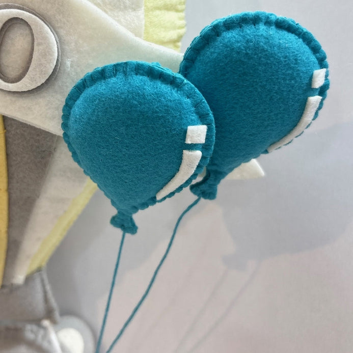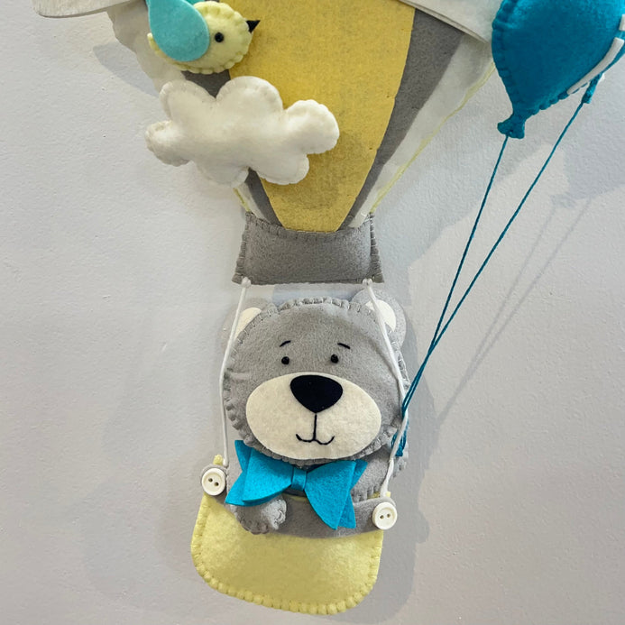 Personalised Name Hanging | Grey Teddy in a Hot Air Balloon