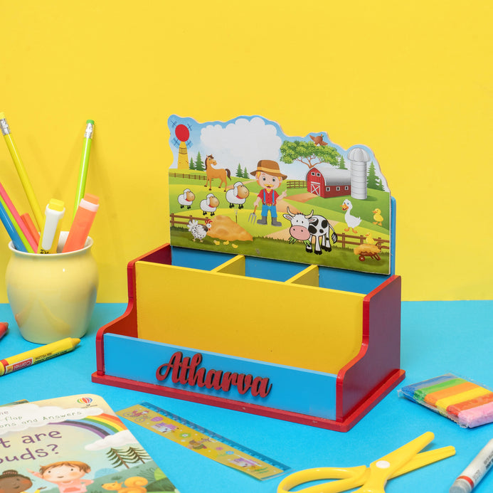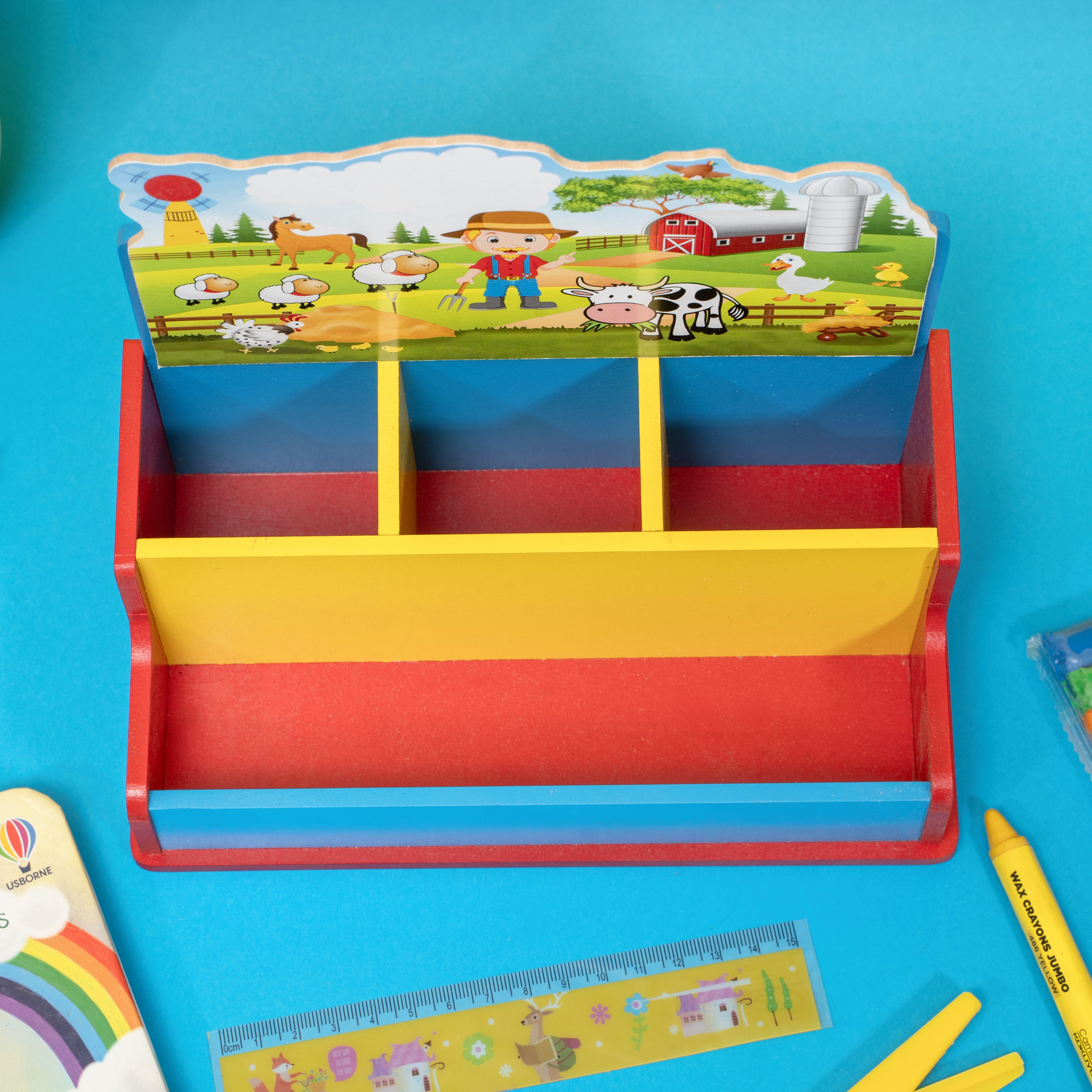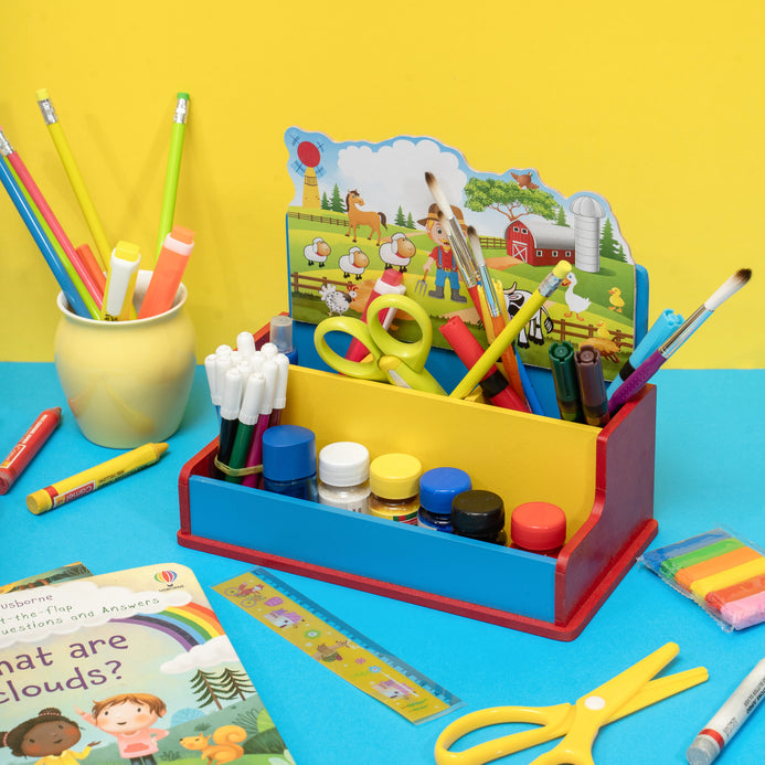 Keep your desk and work area organized and fun with this 3 Slot Stationery Holder! This organizer features a colourful back to school theme that is perfect for both kids and adults. With three compartments, it is ideal for storing pens, pencils, markers, and other small art supplies. Made of durable materials, this holder is built to last and will add a touch of magic to any studyspace. Whether you're looking for a gift for a student, teacher, or artist, this stationery holder is a practical and charming addition to any desk.