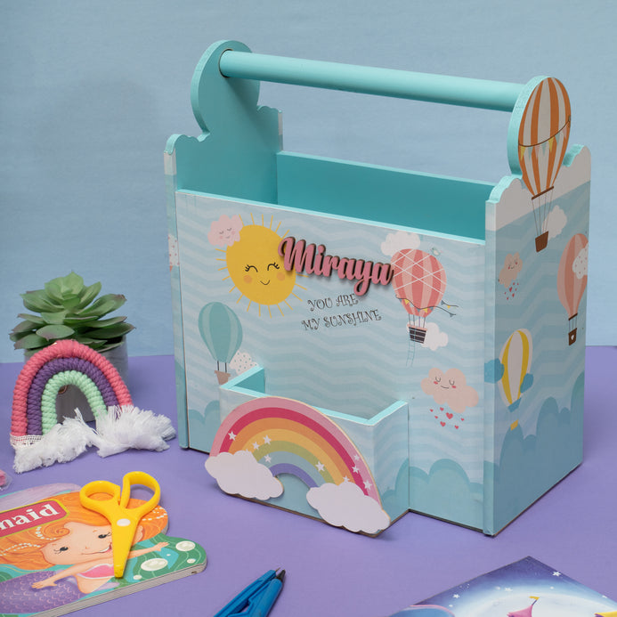 Our quirky bookrack caddy is creative and functional designed to help organize books and stationery while keeping desks clutter-free. The inclusion of a compartment adds to its utility, and the round handle makes it easy for kids to carry around. This type of product seems ideal for promoting organization and creating a tidy workspace, especially for children who might need a bit of extra motivation to keep their belongings in order.