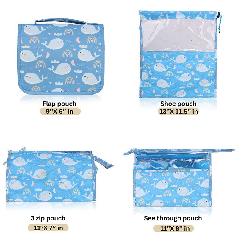 Our 4 piece toiletry pouch set is versatile and perfect for busy little ones and their daily essentials.