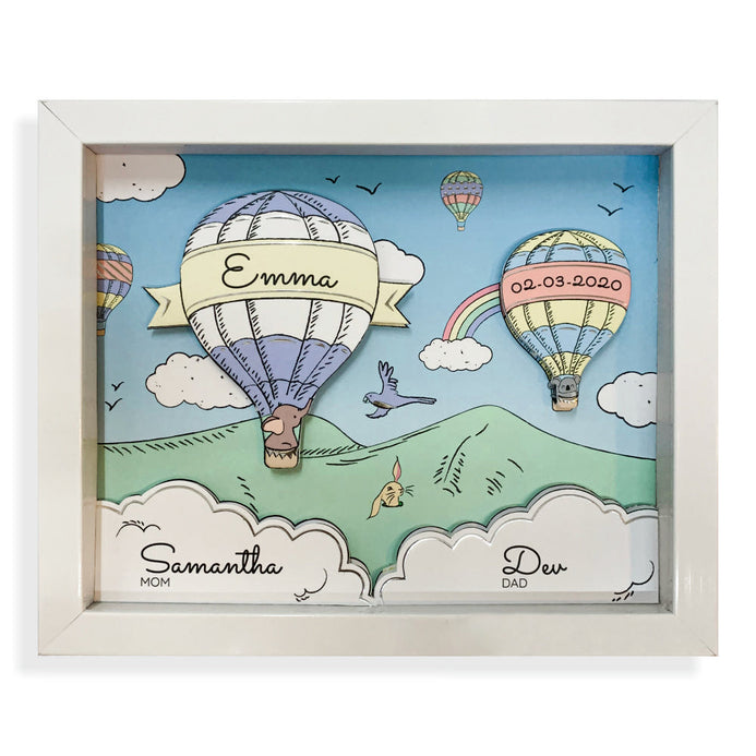 Personalised Shadow Box Frame with Silver Foil | Blue Hot Air Balloon