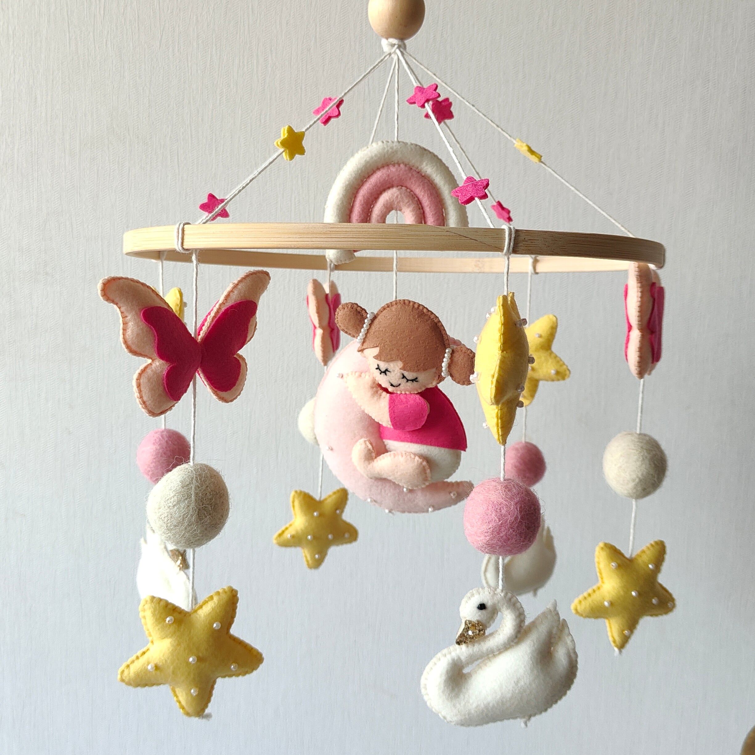 Say hello to peaceful nights with our enchanting cot mobile, perfect for bassinets and cribs. Crafted with care, it features gentle melodies and rotating characters that lull your baby into a serene slumber. Soft colours and textures provide sensory stimulation for their developing senses.