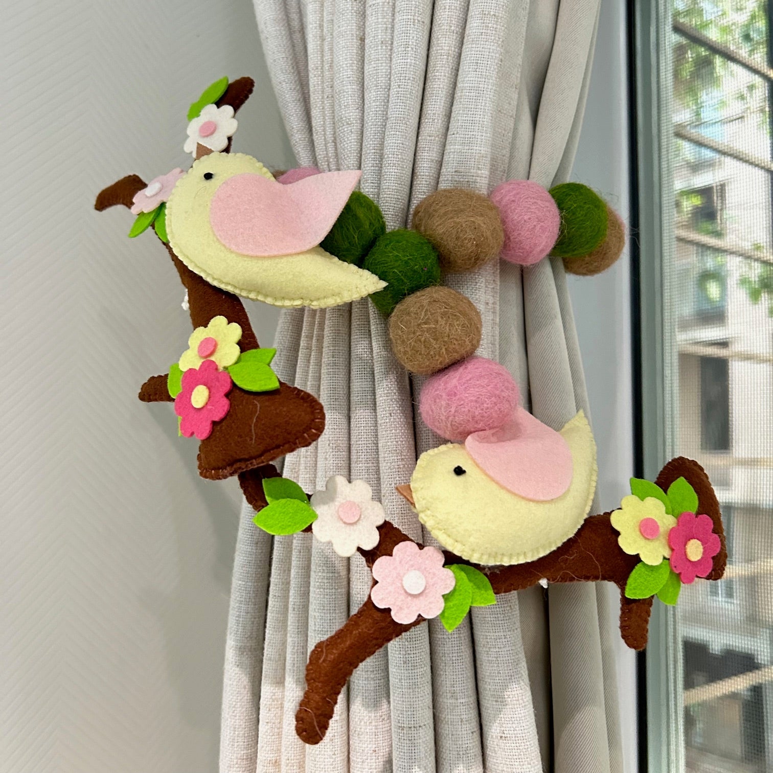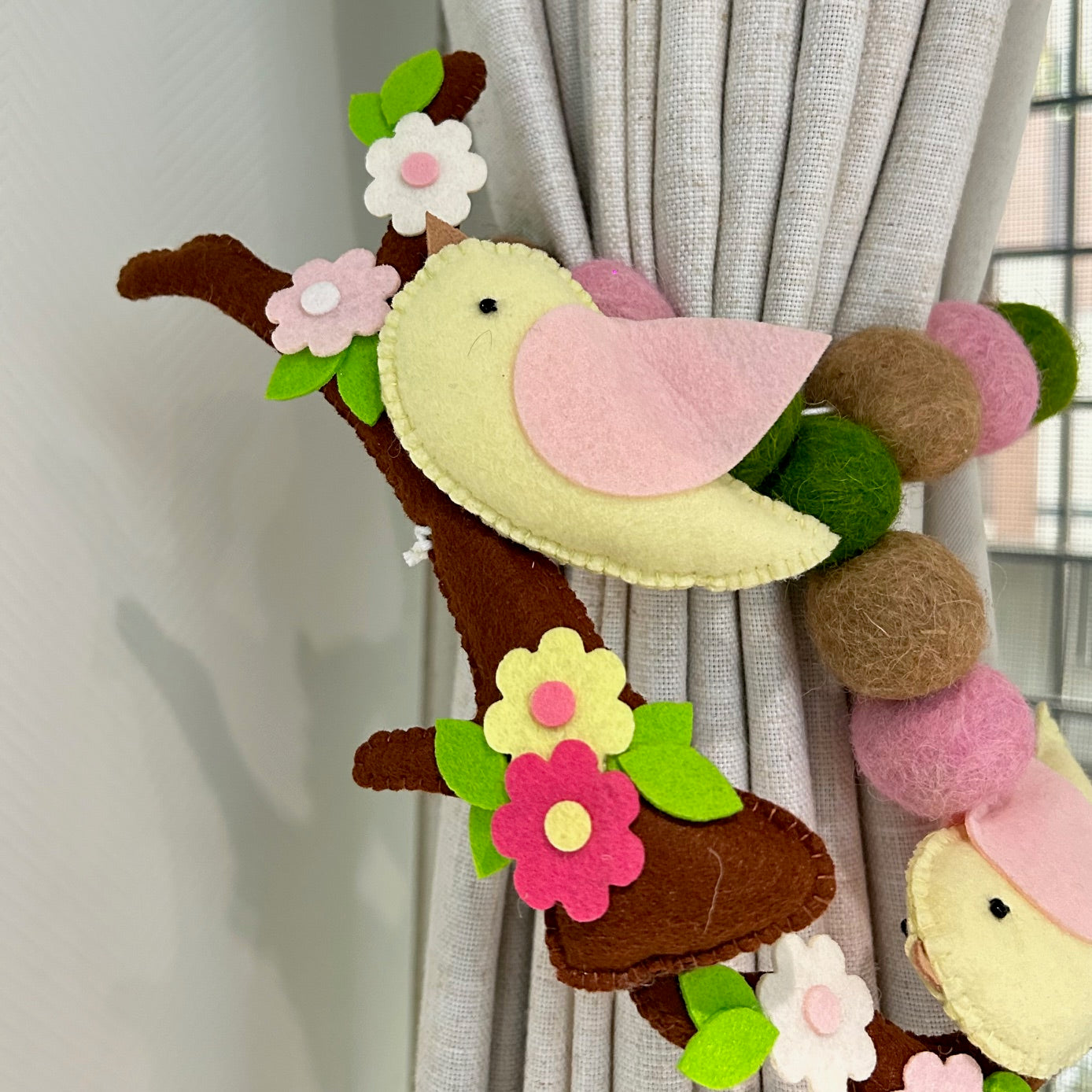 Transform your child's room with our enchanting Birds on a Branch themed Curtain Tie. In soothing shades of Lemon Yellow, Red, Brown, White, Green and Pink, these delightful accessories not only keep curtains neatly in place but also add a charming touch to the decor. Handstitched and beautifully crafted, they're the perfect blend of functionality and fun for your little one's space!