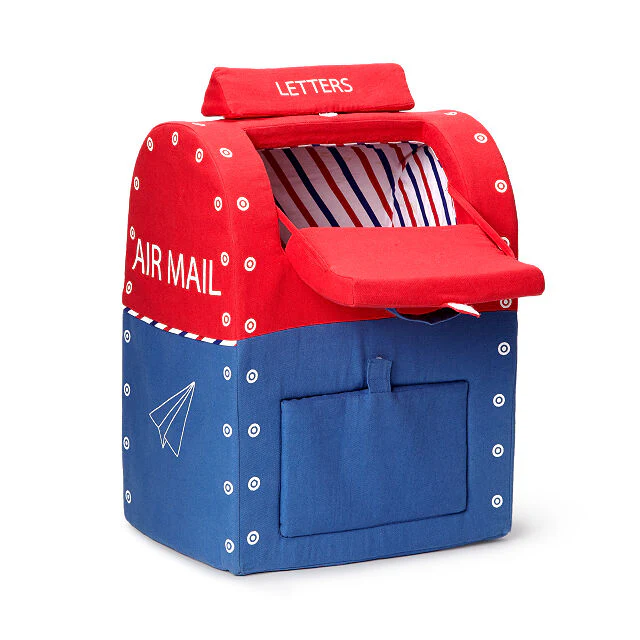 Introducing the perfect toy for your little ones to ignite their imagination and encourage their curiosity - the pretend play mail box! Made with high-quality 100% fabric cotton canvas and and rigid foam, this mail box is both soft and durable, ensuring your child can play with it for hours on end.With its vibrant red and blue colors, this mail box is not only eye-catching, but it also adds a pop of color to any playroom or nursery. Standing at a height of 15 inches, it's the perfect size for children to play with, without being too bulky or taking up too much space.What sets this mail box apart from other pretend play toys is the included textile envelope, and postage stamp, allowing your child to truly immerse themselves in the postal world of mail and letters. They can practice writing and sending letters, and even role-play as a postal worker delivering mail to their friends and family.Not only is this mail box a fun and engaging toy for children, but it also helps to develop their cognitive and social skills. Through imaginative play, they learn to problem-solve, communicate, and empathize with others.So why wait? Give your child the gift of endless fun and learning with the pretend play mail box. It's the perfect addition to any playroom or nursery, and is sure to provide hours of entertainment for your little ones.