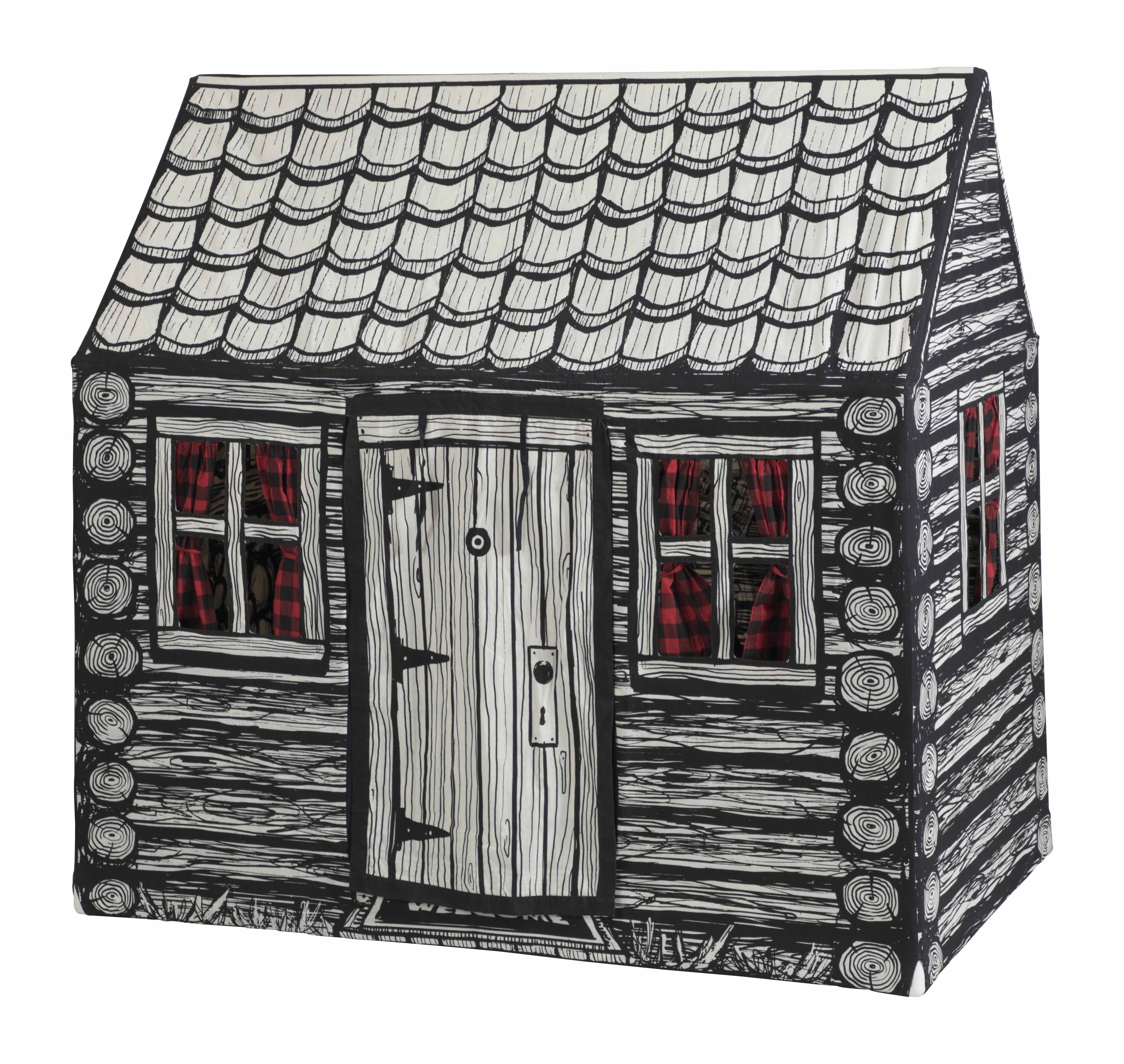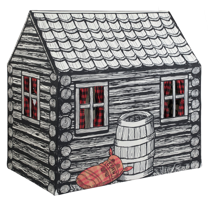 Set up this cozy, rustic Log Cabin Tent in your own indoor or outdoor "wilderness" and let the homesteading commence. Kids will love the illustrated print woodgrain logs, stone chimney, and hinged doors. From inside, peep out of the four windows with actual tie-back curtains, and fasten the roll-up door with fabric ties. Sturdy, 100% cotton cabin shell measures 52"L x 33"W x 53"H, and requires adult assistance with the simple metal pipe and three-way plastic connector assembly. Instructions are included, and no tools are required. The tent is perfect for outdoor warm-weather play, but make sure to store it indoors when not in use!