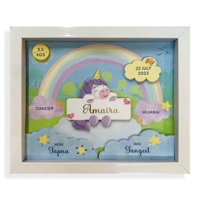 Personalised Shadow Box Frame with Gold Foil | Unicorn