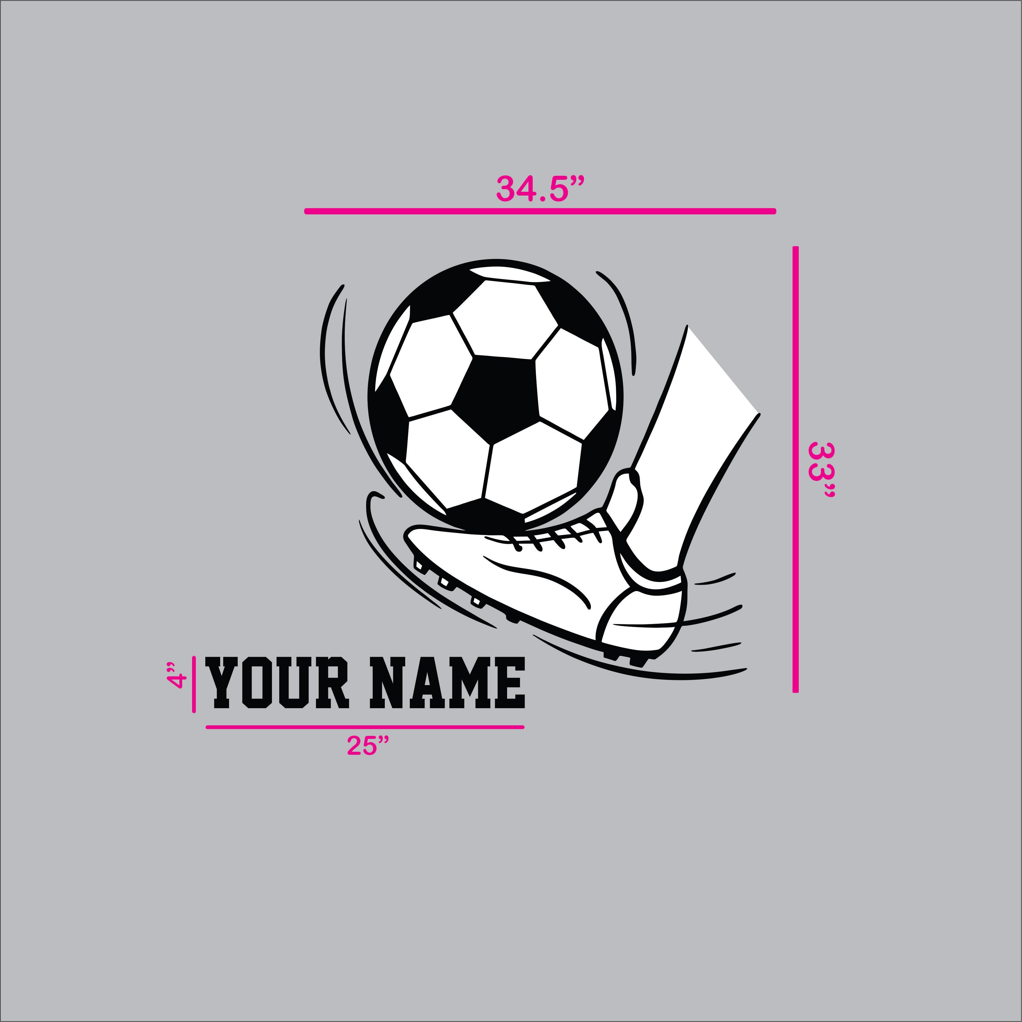 Soccer wall decals can be used on just about any smooth or semi-smooth surface including painted walls, tiles, wood, glass, stainless steel, plastic, or mirror.Size of the sticker is 34.5" by 33" and name 4" by 25"