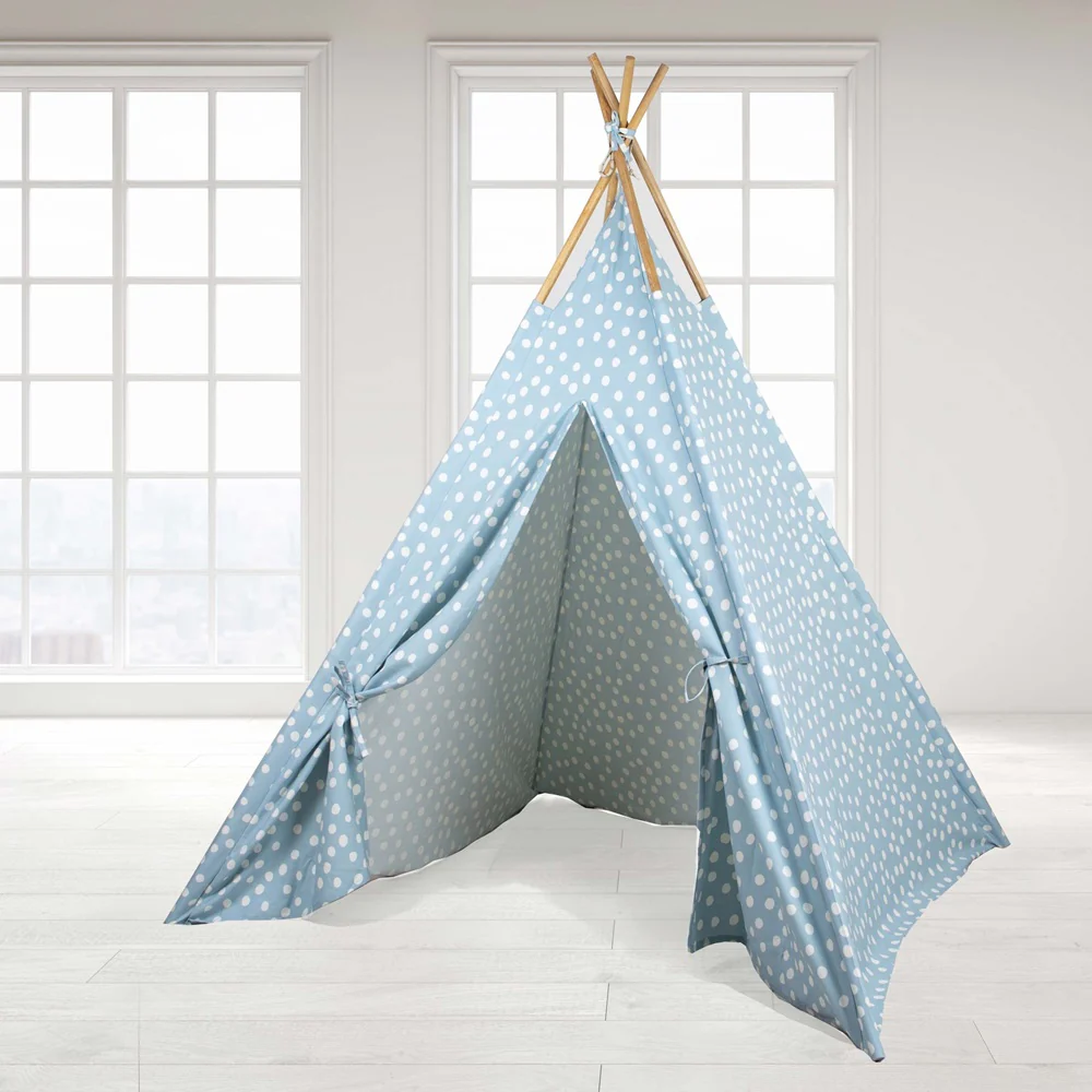 Introducing the perfect addition to your child's playtime - our Powder Blue Base and white dots Teepee Tent!
