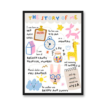 This wall frame encompasses all the details of the day your baby was born. With cute illustrations to decorate their nursery or room wall, this art piece is the perfect personalised gift for a child.
