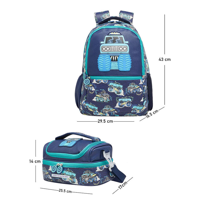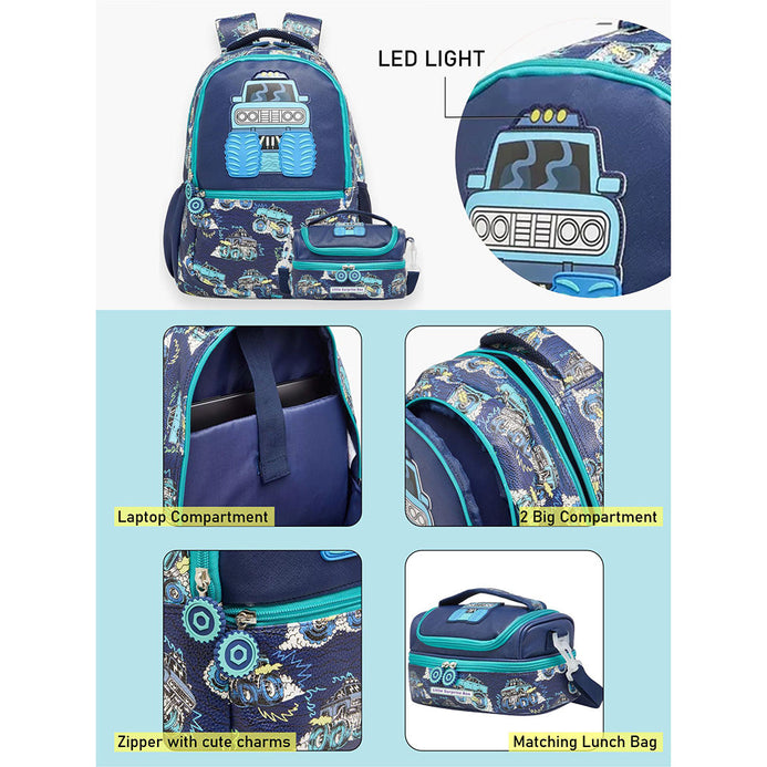 2Pcs Monster Truck School Backpack & Matching Lunchbag
