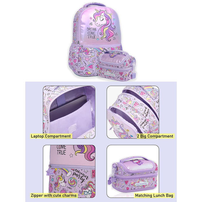 1. 2 pcs Matching Set:Â This beautiful and unique backpack comes in a set of 2, which is a Matching Backpack and Lunch Bag. The matching concept adds on to the style statement and is quite a had turner as a concept. The Lunchbag is insulated therby keeping the lunch warm and safe.
