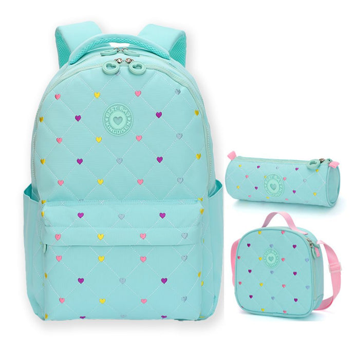1. 3 pcs Matching Set: This beautiful and unique Backpack comes in a set of 3,which is a Matching Lunch Bag,big size Backpack and a Stationery Pouch Set. The matching concept adds on to the style statement and is quite a head turner as a concept. The Lunchbag is insulated waterproof wipeable material therby keeping the lunch warm and safe. The matching stationery pouch is generously sized so that the child can easily store all the stationery well.