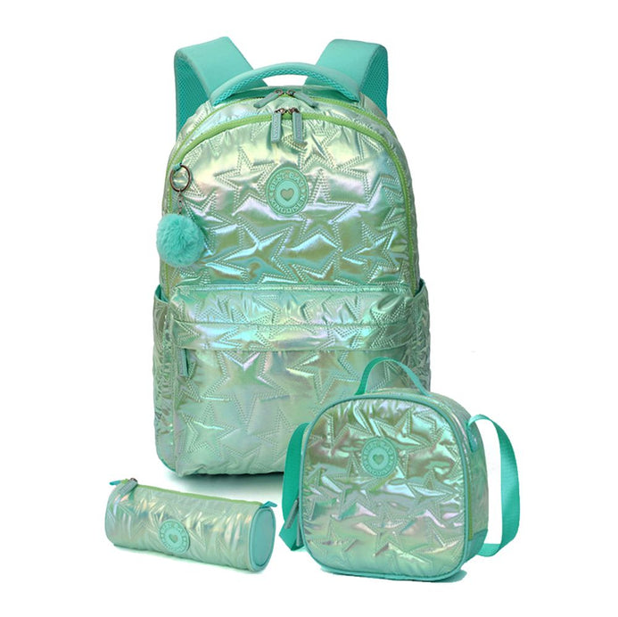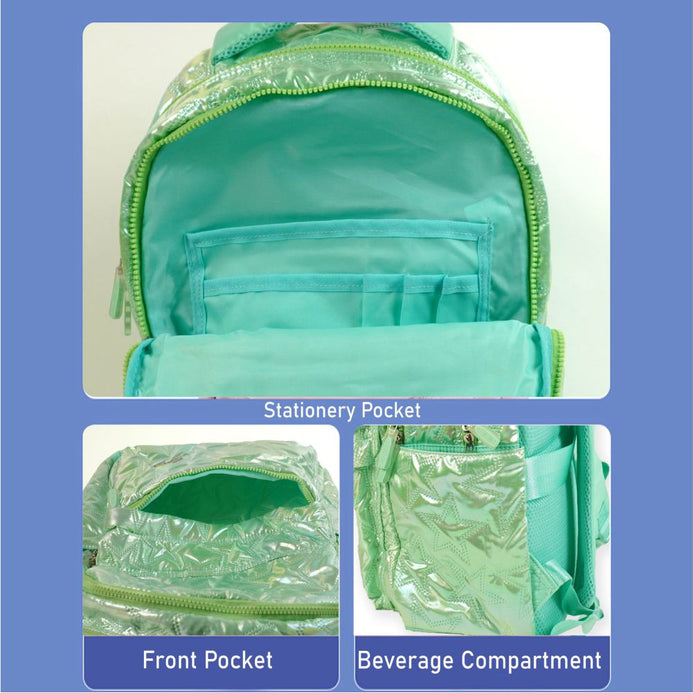 1. 3 pcs Matching Set: This beautiful and unique Backpack comes in a set of 3,which is a Matching Lunch Bag,big size Backpack and a Stationery Pouch Set. The matching concept adds on to the style statement and is quite a head turner as a concept. The Lunchbag is insulated therby keeping the lunch warm and safe. The matching stationery pouch is generously sized so that the child can easily store all the stationery well.