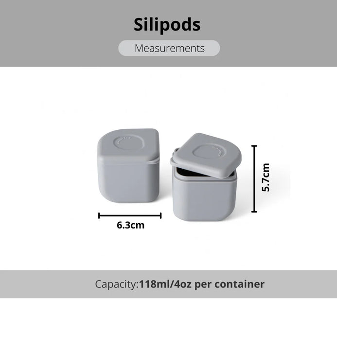 • Miniware Silipods Food Storage Containers Set: Includes 2, capacity 4 oz leak-proof, food-grade silicone Silipods storage containers in Grey.