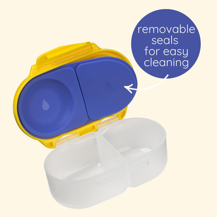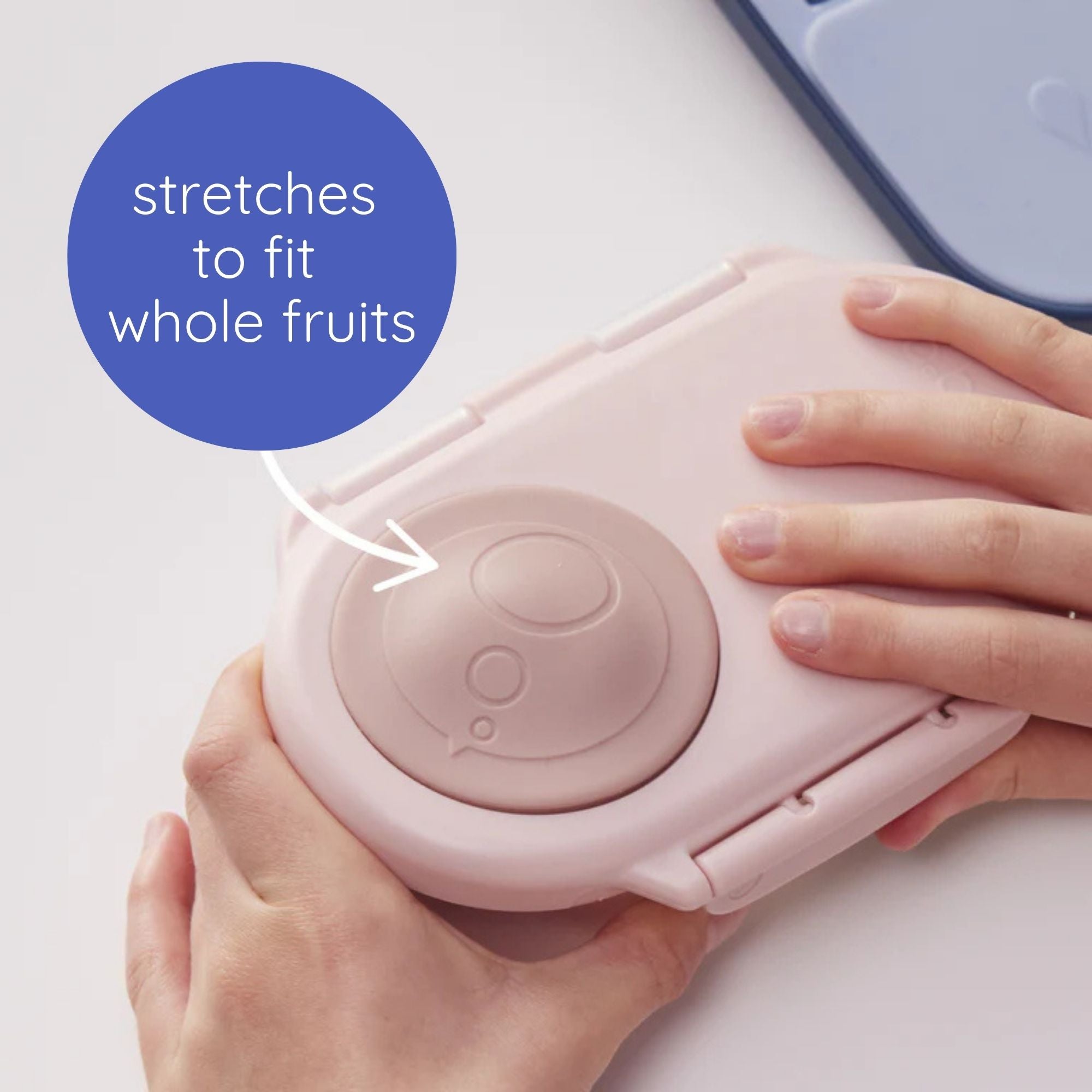 On-the-go? We’re making snack time easy with the versatile snackbox. The perfect answer for smaller portions, keep little ones fed no matter what your day has in store – playground, car trips or kinder. The flexi whole fruit holder secures small, whole fruits in place, meaning no more cut fruit or soggy, bruised snacks! 2 sealed compartments are leak proof so wet snack ideas such as puree, yoghurt and dips can be packed with peace of mind. An easy open/close clip is large enough for little hands and fingers and the seals are removable for easy, hygienic cleaning.