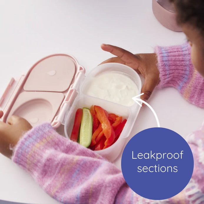 •  2 sealed compartments are leak proof securing wet foods such as puree, yoghurt and dips
